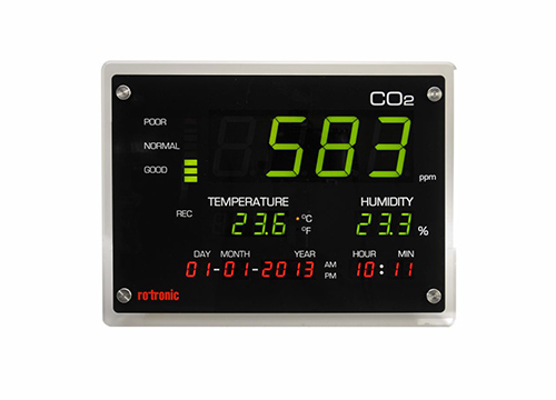 The wall-mounted or bench-top CO2 display is the latest development of an inexpensive display unit that simultaneously measures and records CO2, humidity and temperature. Equipped with the field-tested ROTRONIC HYGROMER® IN-1 humidity sensor, this instrument offers unbeatable value for money. The instrument can be configured directly with buttons and stored data can be exported to a USB stick for analysis with the free ROTRONIC software package SW21.