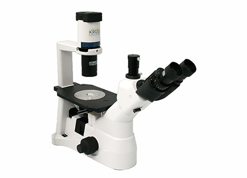 The inverse microscope is specially designed for the identification and analysis of biological substances and cultures. The objectives have a large working distance, making it possible, for example, to examine samples through the bottom of petri dishes. With an upright microscope, the lens is under the specimen and the condenser above the specimen, which is particularly suitable for viewing on microscope slides. In an inverted microscope, this arrangement is reversed. This gives the user more space and ensures the required proximity of the lens to the specimen, so that even living cells in cell culture dishes or other, larger containers can be easily analyzed. In addition, an inverted microscope allows easy access to the cells, for example micromanipulators. The photo and C-mount video adapter allows connection of camera and video camera.